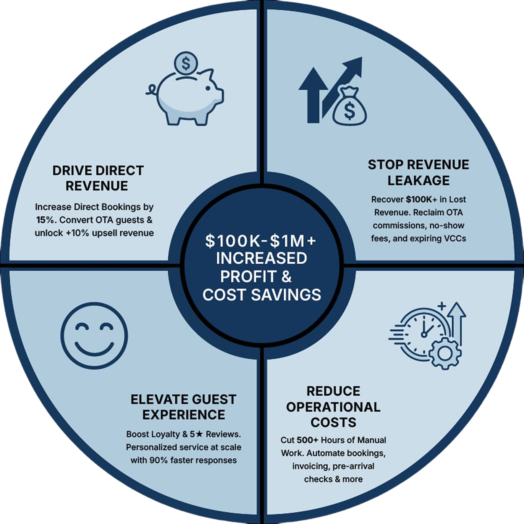 We help hotel groups unlock $100K–$1M+ in additional profit and cost savings through AI automation—without hiring a tech team or disrupting your operations